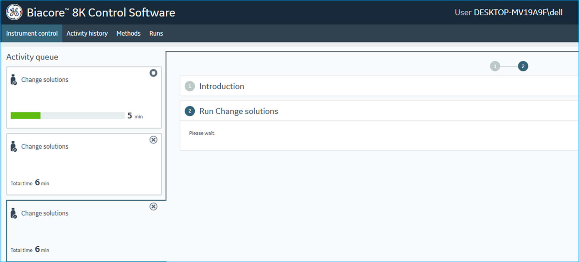 图5 Biacore 8K仪器控制软件中“Change Solutions”操作界面