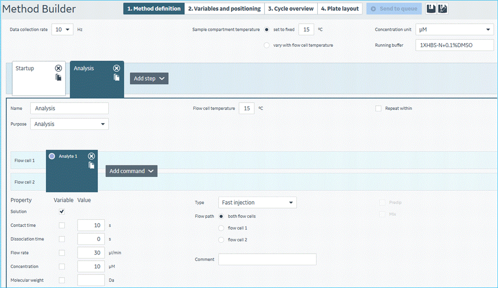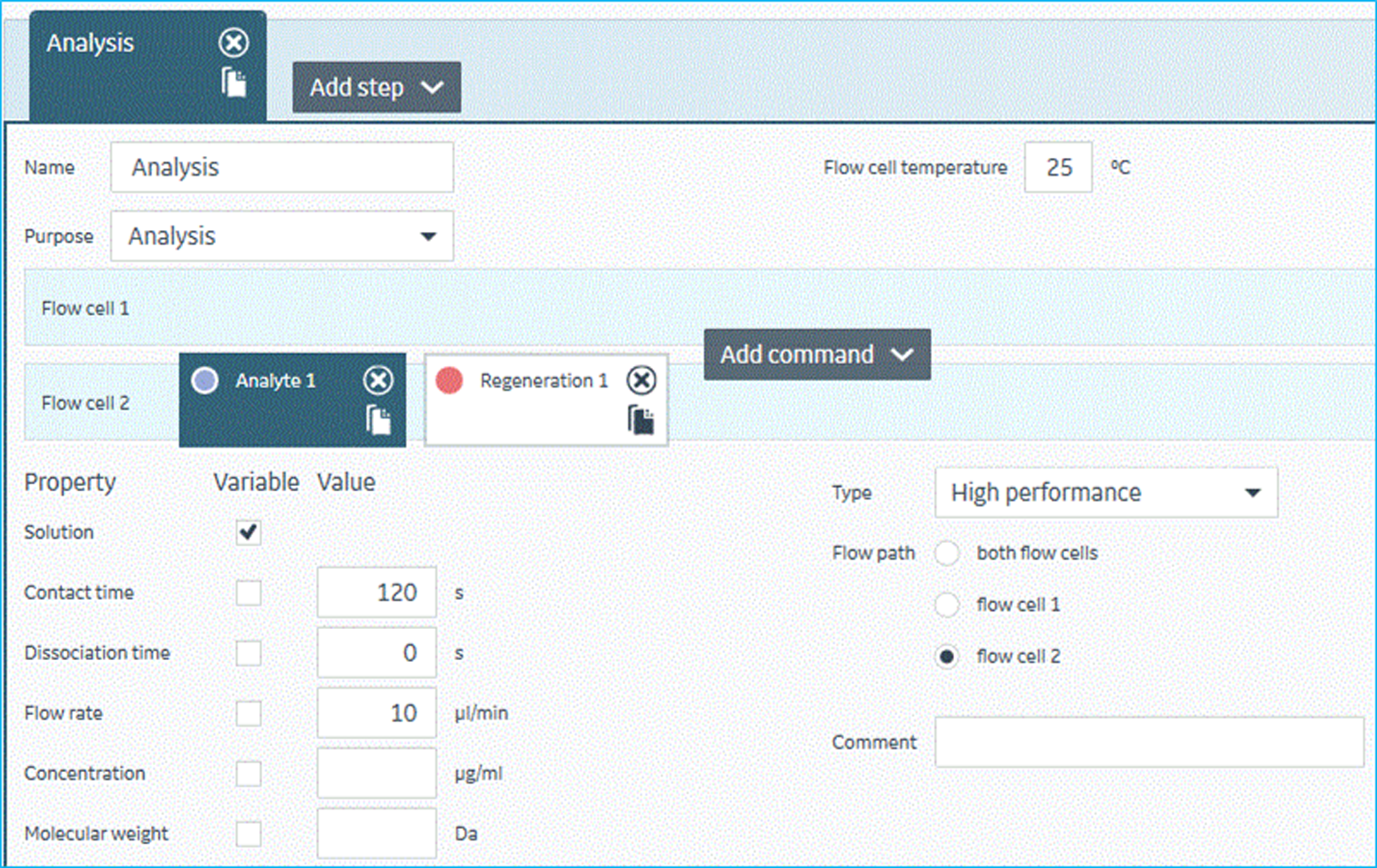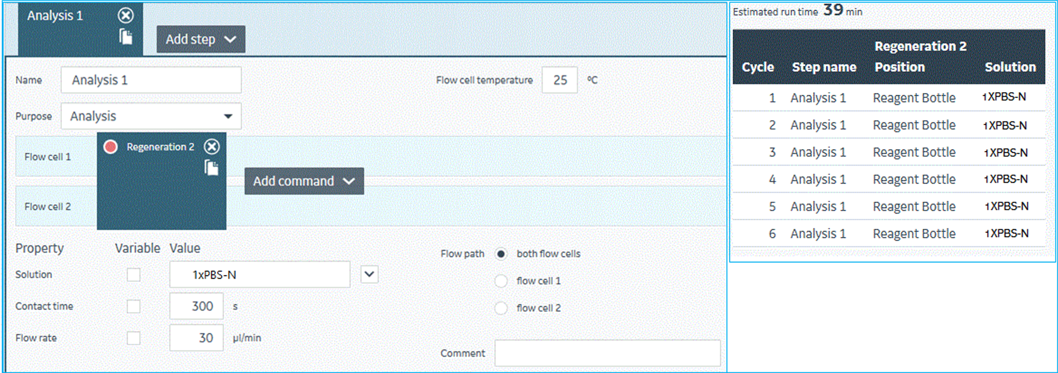 图6 Biacore 8K仪器控制软件中“Clean Screen”实验方法设置