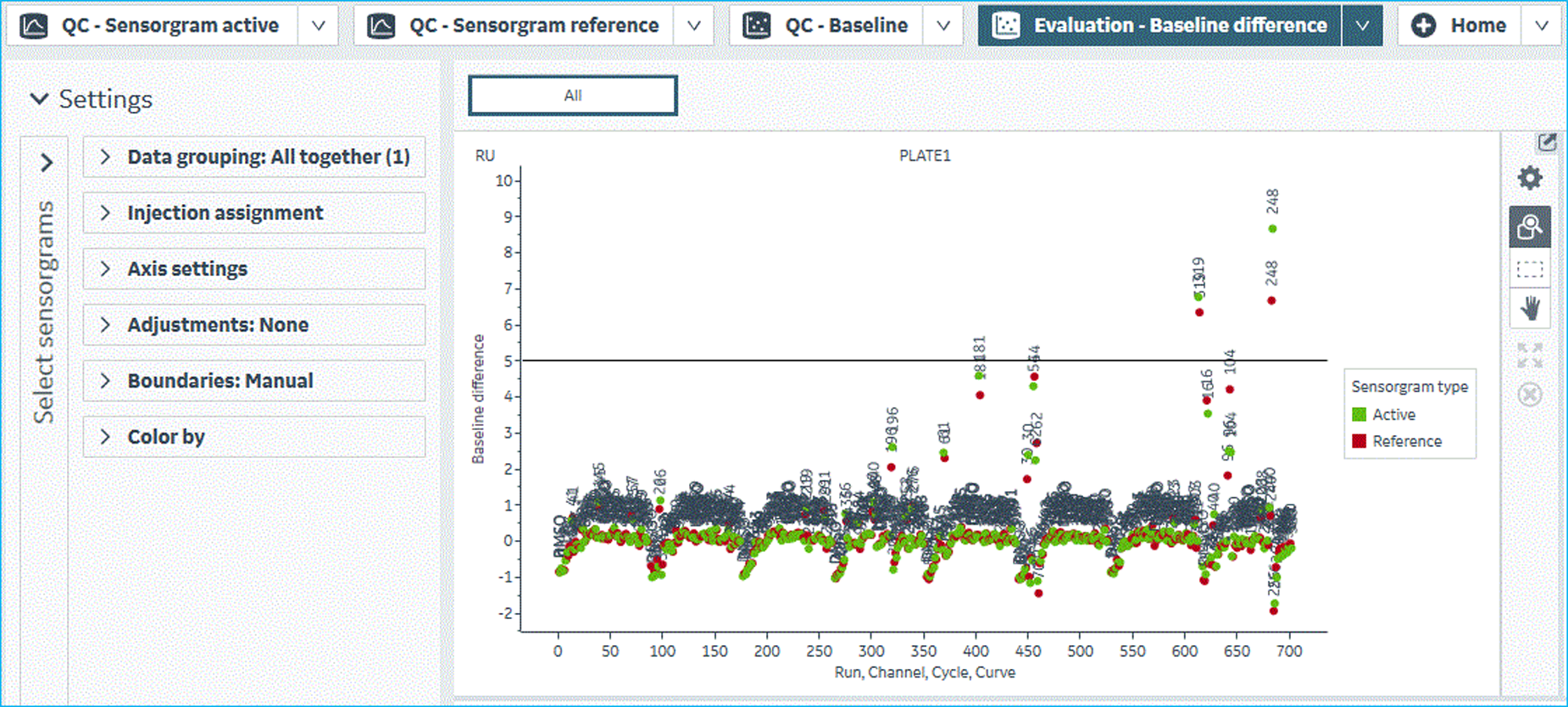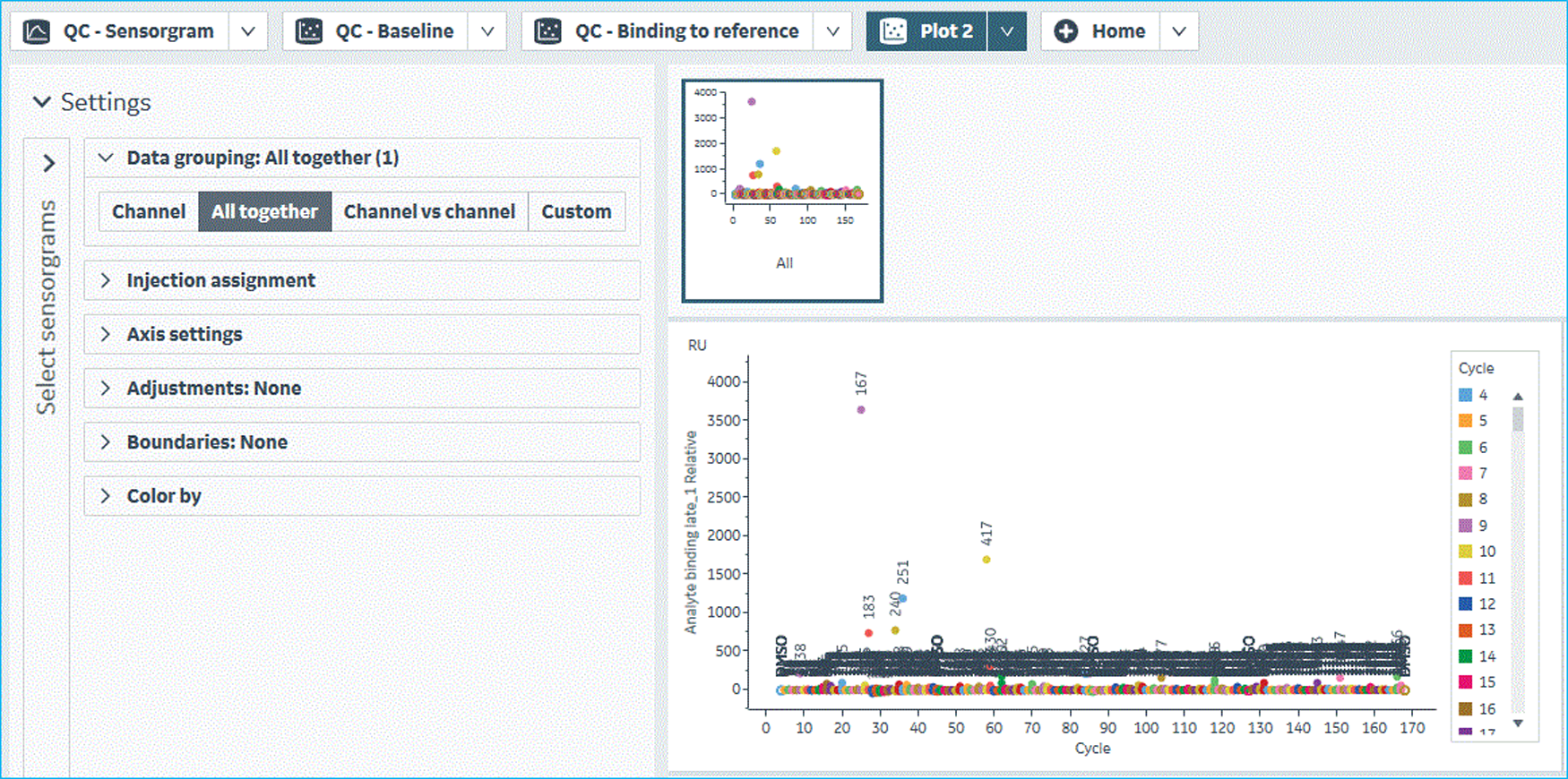 图12 Biacore Insight Evaluation Software分析软件中单浓度结合筛选点状图分析结果展示