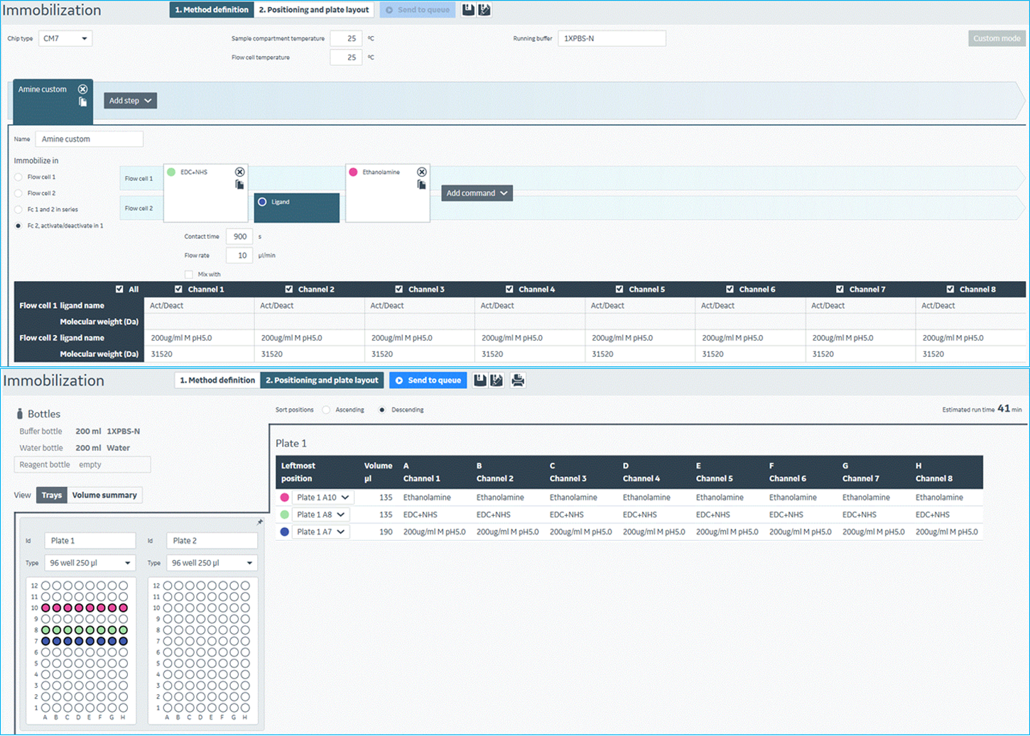 图9 Biacore 8K仪器控制软件中,氨基偶联固定配体蛋白实验方法设置
