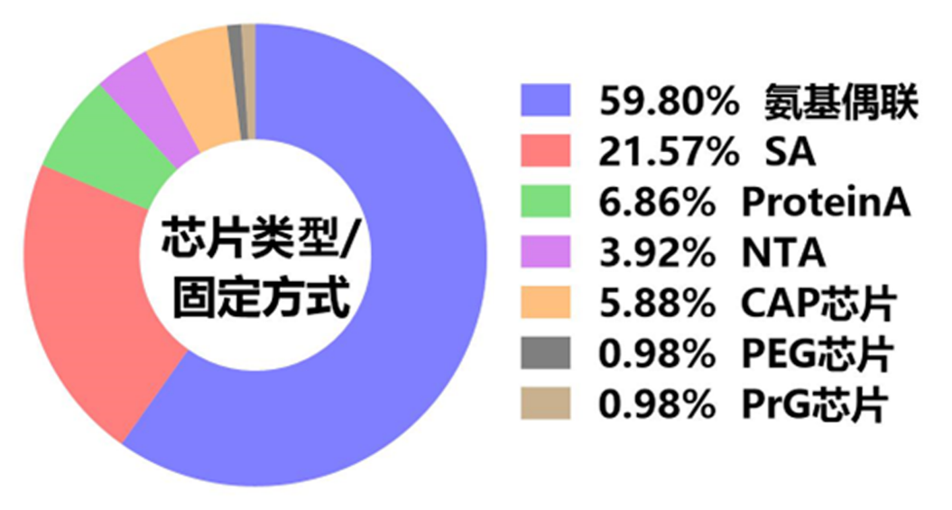 图5 SPR实验中所使用芯片以及配体固定方式统计结果