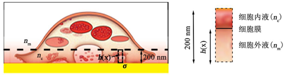 通过对细胞折射率模型的建立与简化,最终将不规则实际细胞建模为规则的细胞等效折射率模型,从而建立起细胞的贴壁状态、等效贴壁面积变化与等效折射率变化之间的关系。由于SPR检测机理是对敏感范围内的等效折射率变化产生响应,因而对细胞折射率模型的建立和简化最终使得SPR能够通过对等效折射率的测量来观测和评估细胞等效贴壁面积的变化;