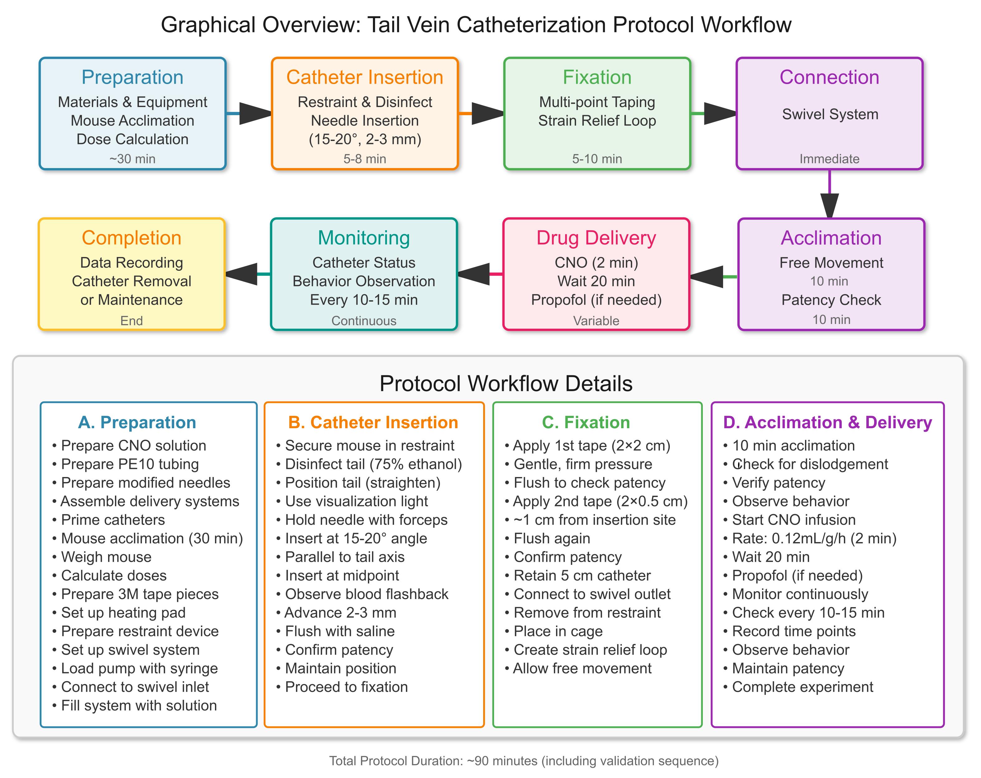 Tail vein catheterization protocol workflow